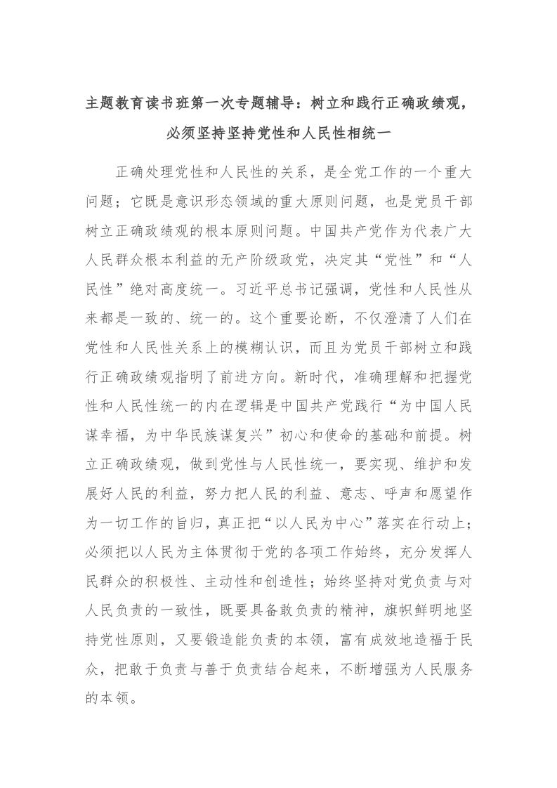 / 主题教育读书班第一次专题辅导:树立和践行正确政绩观,必须坚持坚持党性和人民性相统一