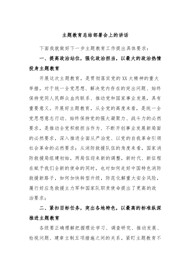 / 主题教育总结部署会上的讲话