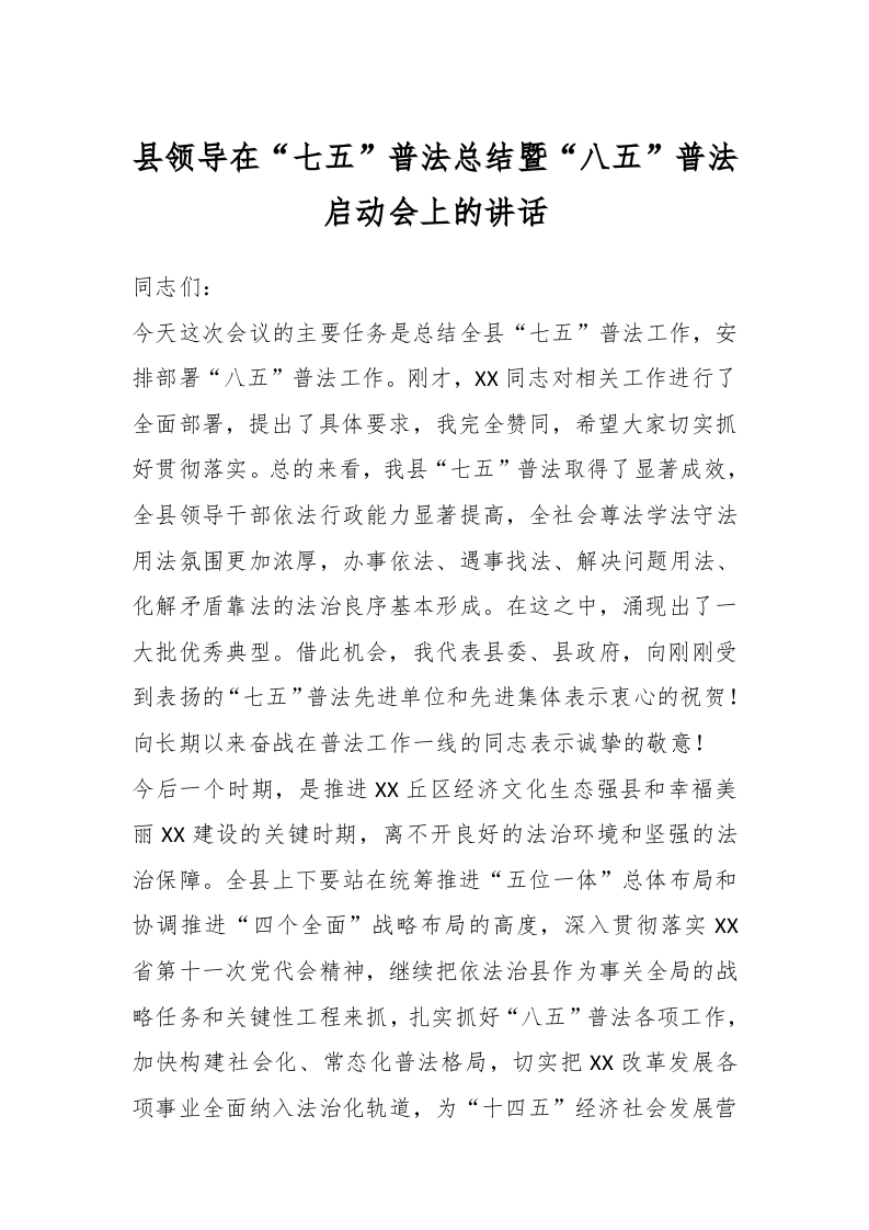 / 县领导在“七五”普法总结暨“八五”普法启动会上的讲话