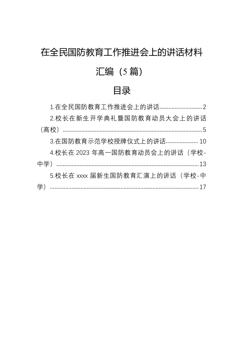 / 在全民国防教育工作推进会上的讲话材料汇编(5篇)