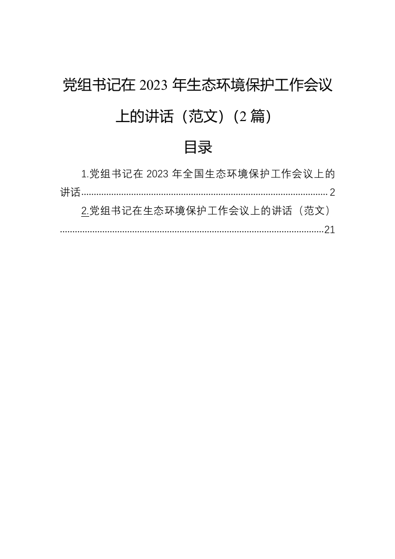 党组书记在2023年生态环境保护工作会议上的讲话(2篇)