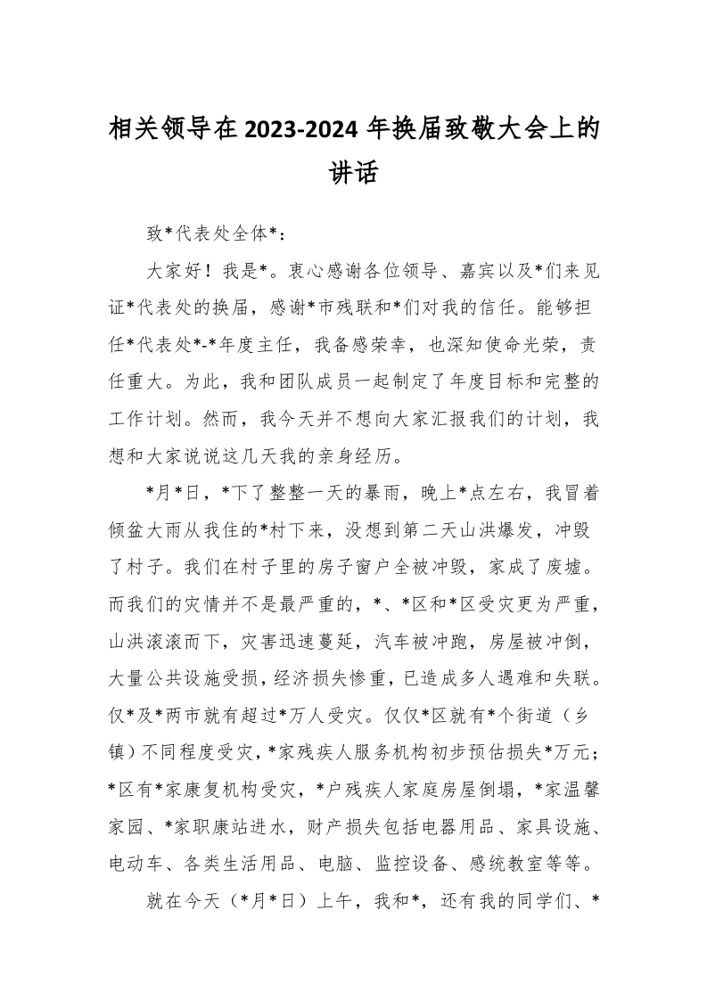 相关领导在2023-2024年换届致敬大会上的讲话