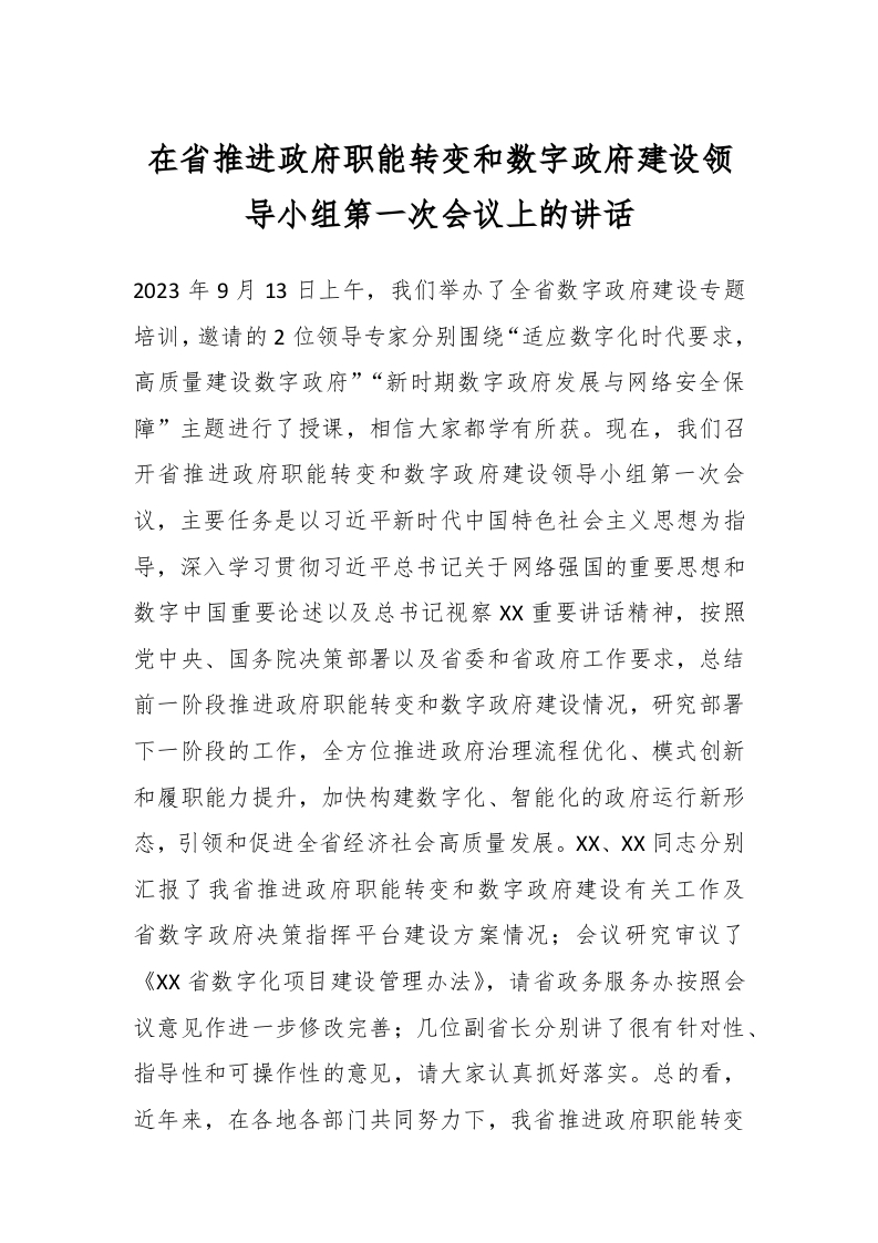 / 在省推进政府职能转变和数字政府建设领导小组第一次会议上的讲话