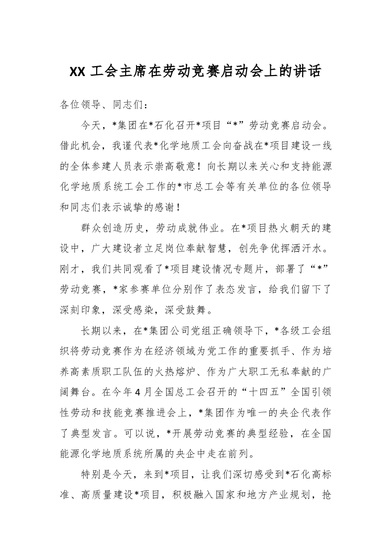 / XX工会主席在劳动竞赛启动会上的讲话