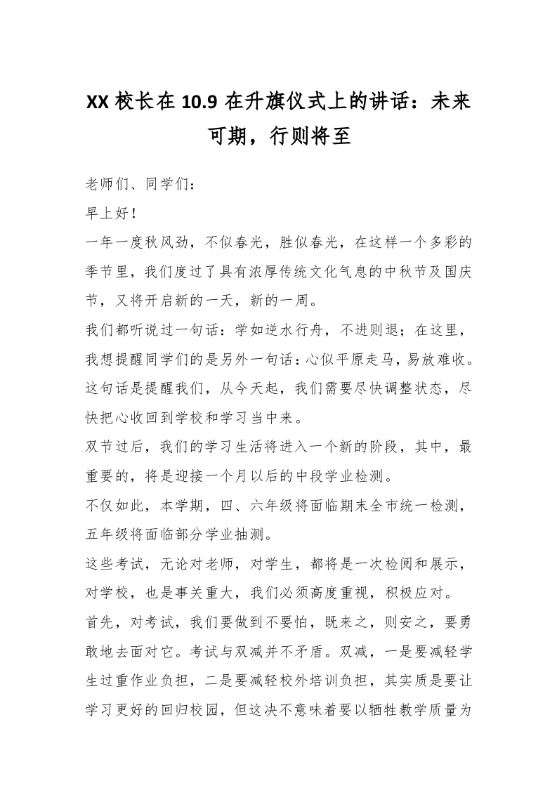 / XX校长在10.9在升旗仪式上的讲话:未来可期,行则将至