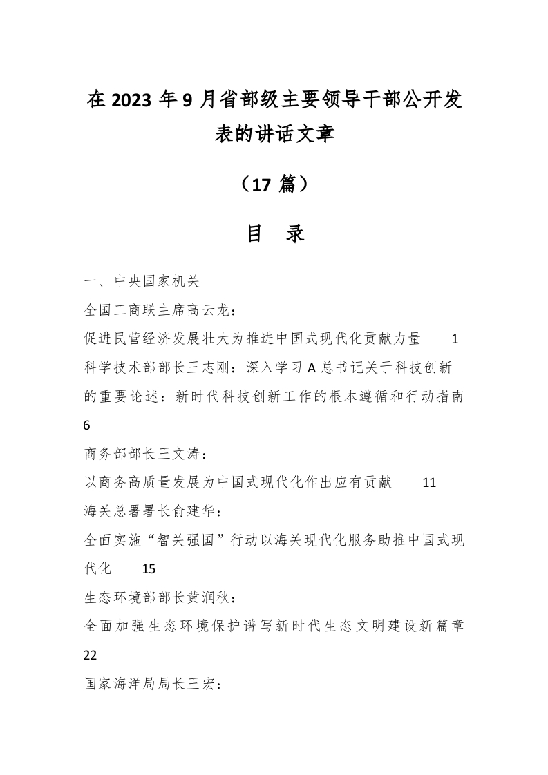 / (17篇)在2023年9月省部级主要领导干部公开发表的讲话文章