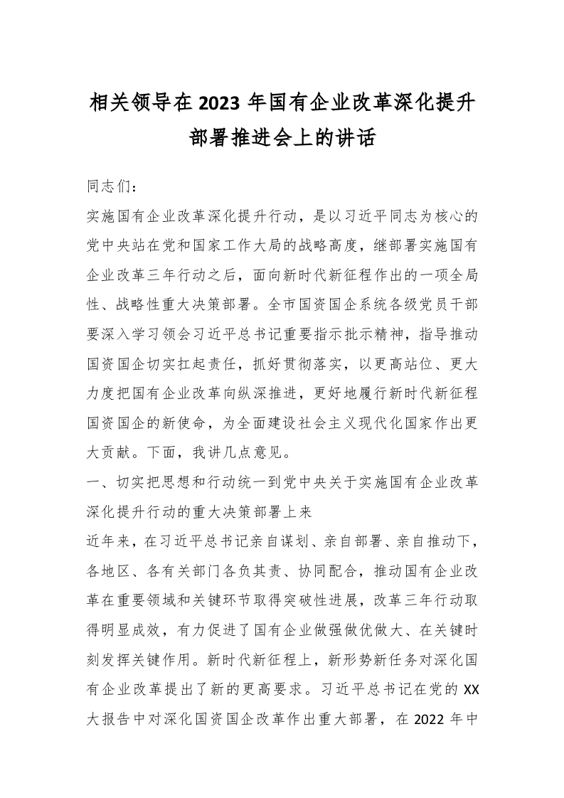 / 相关领导在2023年国有企业改革深化提升部署推进会上的讲话