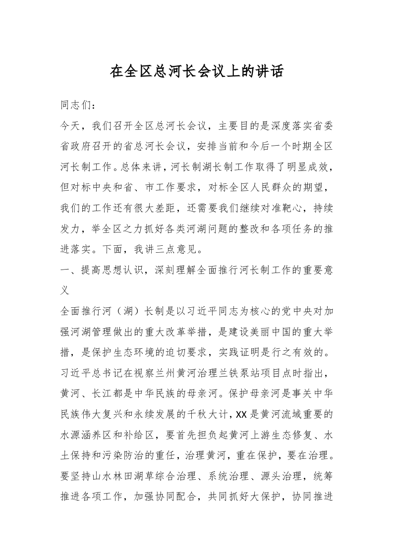 / 在全区总河长会议上的讲话