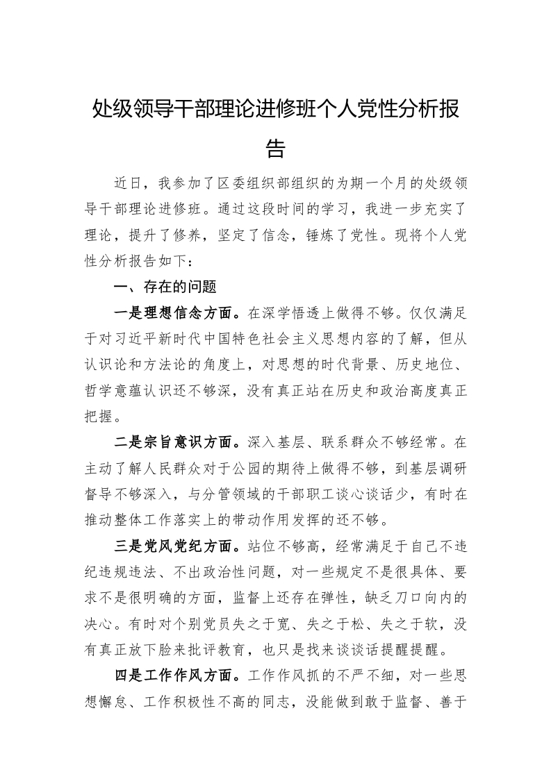 / 处级领导干部理论进修班个人党性分析报告