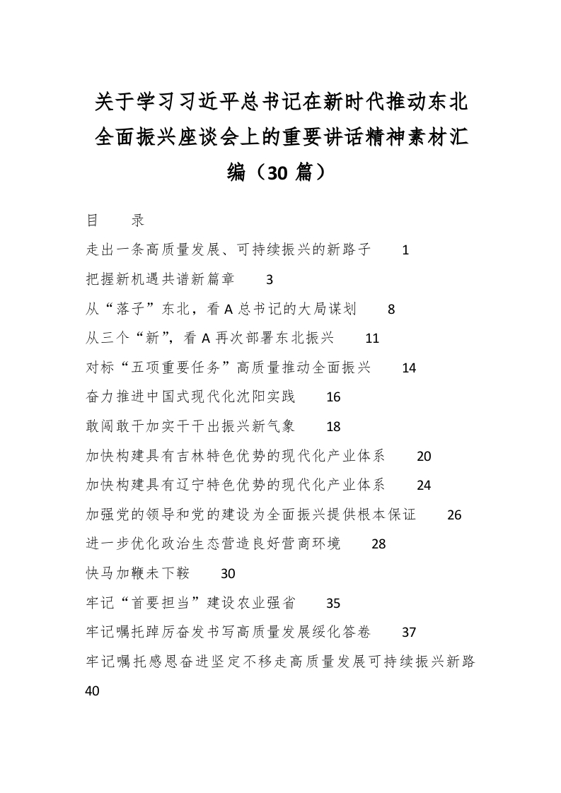 / (30篇)关于学习习近平总书记在新时代推动东北全面振兴座谈会上的重要讲话精神素材汇编