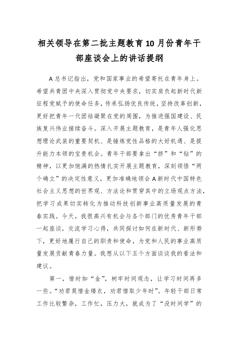 / 相关领导在第二批主题教育10月份青年干部座谈会上的讲话提纲