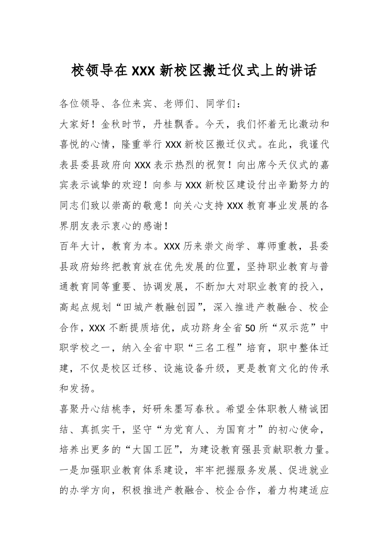 / 校领导在XXX新校区搬迁仪式上的讲话