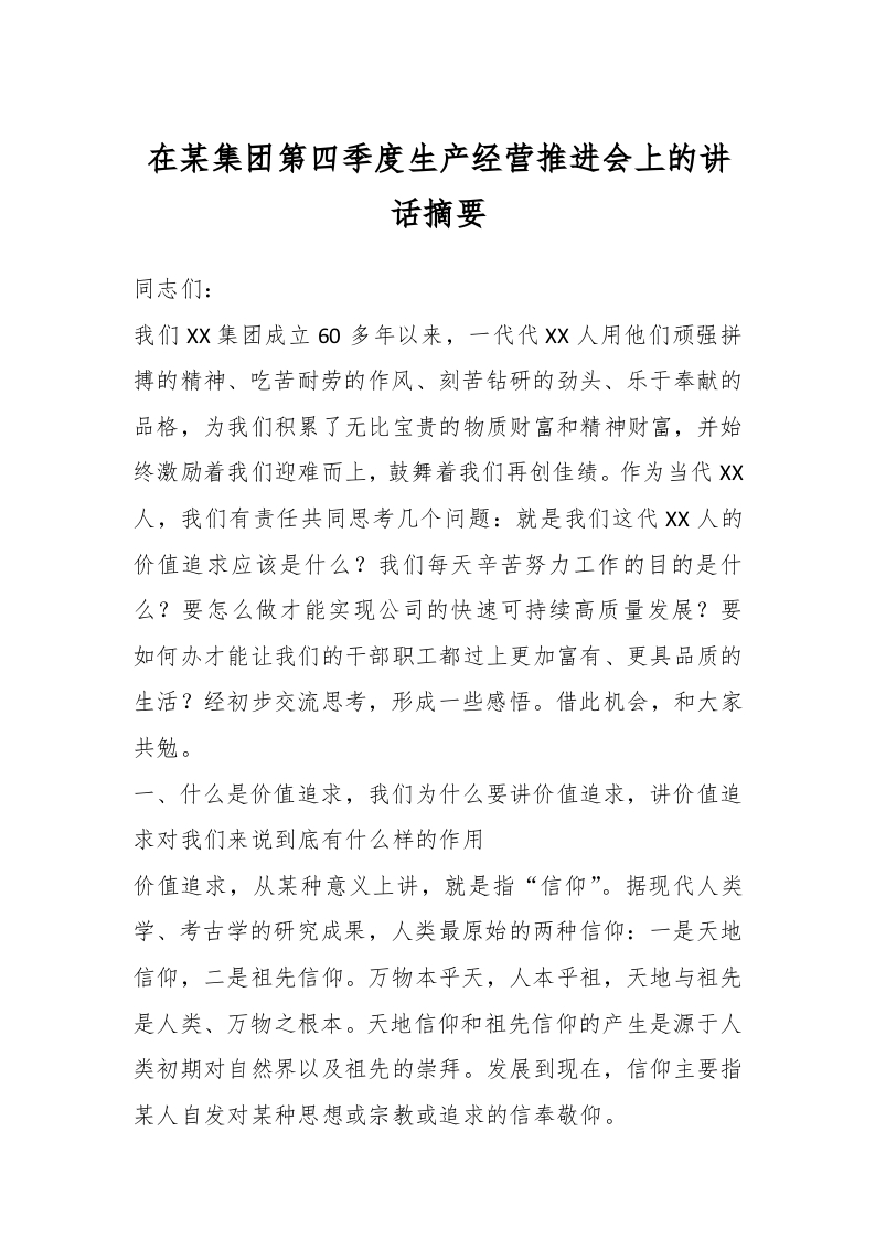 / 在某集团第四季度生产经营推进会上的讲话材料