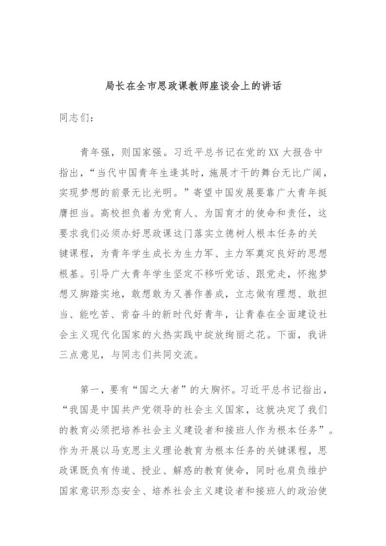 / 局长在全市思政课教师座谈会上的讲话