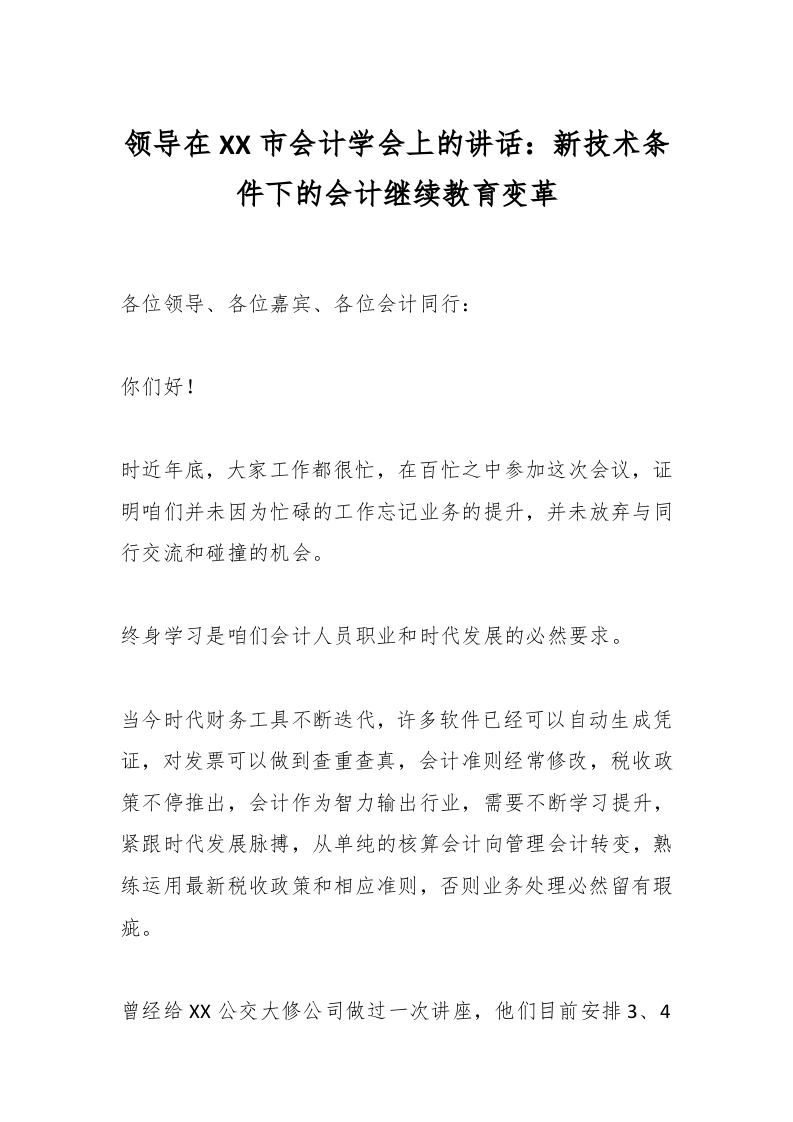/ 领导在XX市会计学会上的讲话:新技术条件下的会计继续教育变革