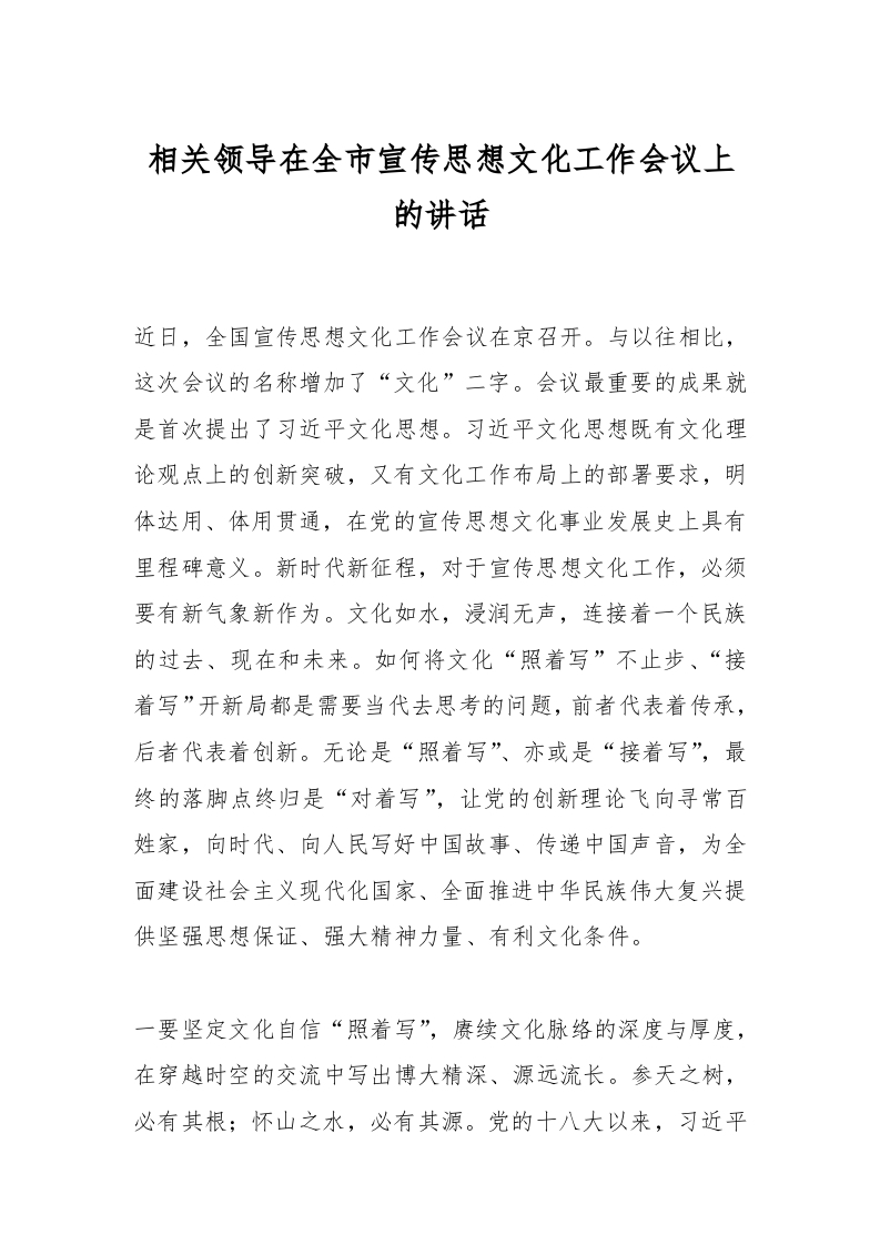 / 相关领导在全市宣传思想文化工作会议上的讲话