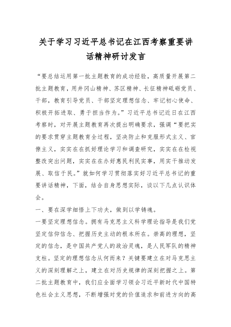 / 关于学习习近平总书记在江西考察重要讲话精神研讨发言