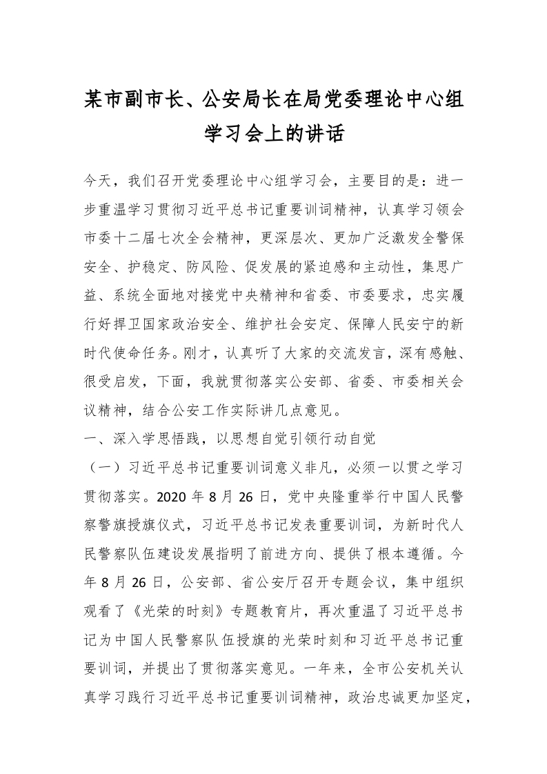 / 某市副市长、公安局长在局党委理论中心组学习会上的讲话