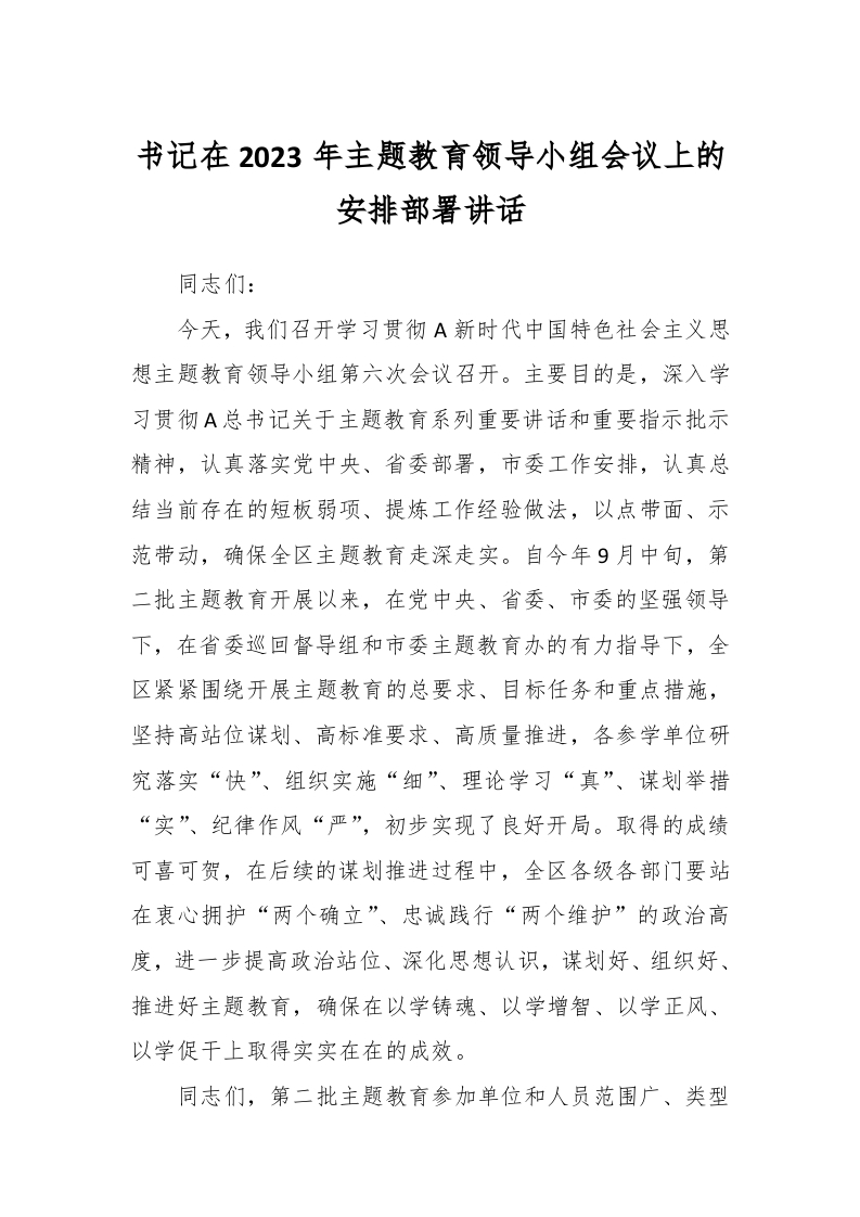 / 书记在2023年主题教育领导小组会议上的安排部署讲话