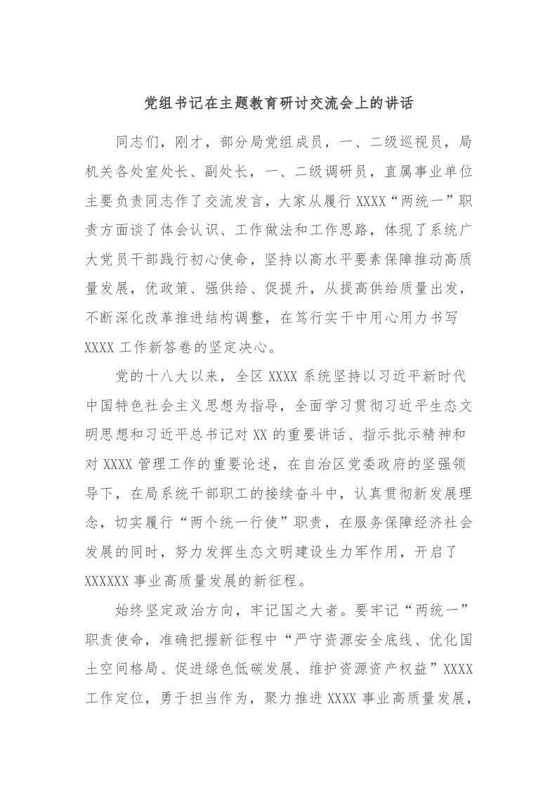 / 党组书记在主题教育研讨交流会上的讲话