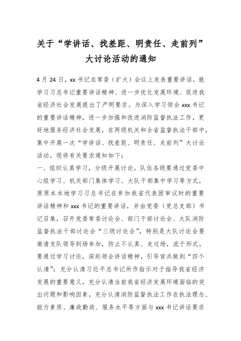 / 关于“学讲话、找差距、明责任、走前列”大讨论活动的通知