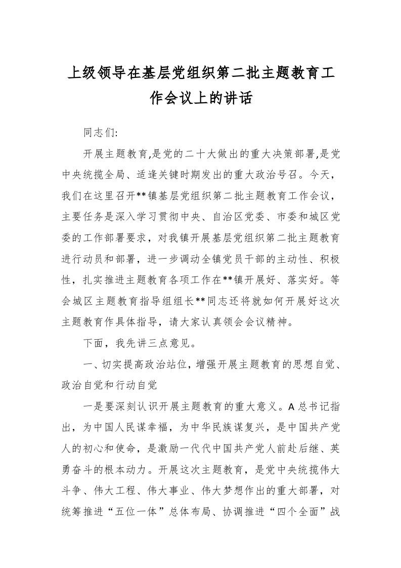 / 上级领导在基层党组织第二批主题教育工作会议上的讲话