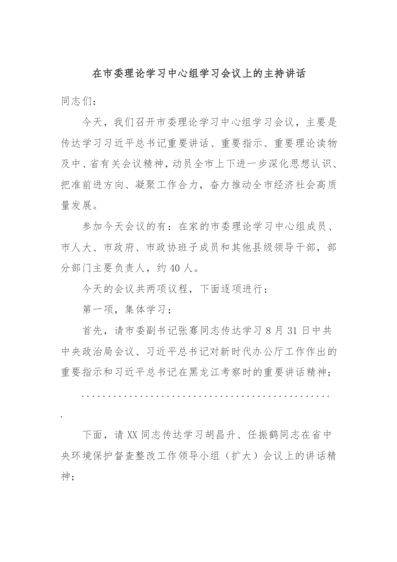 / 在市委理论学习中心组学习会议上的主持讲话