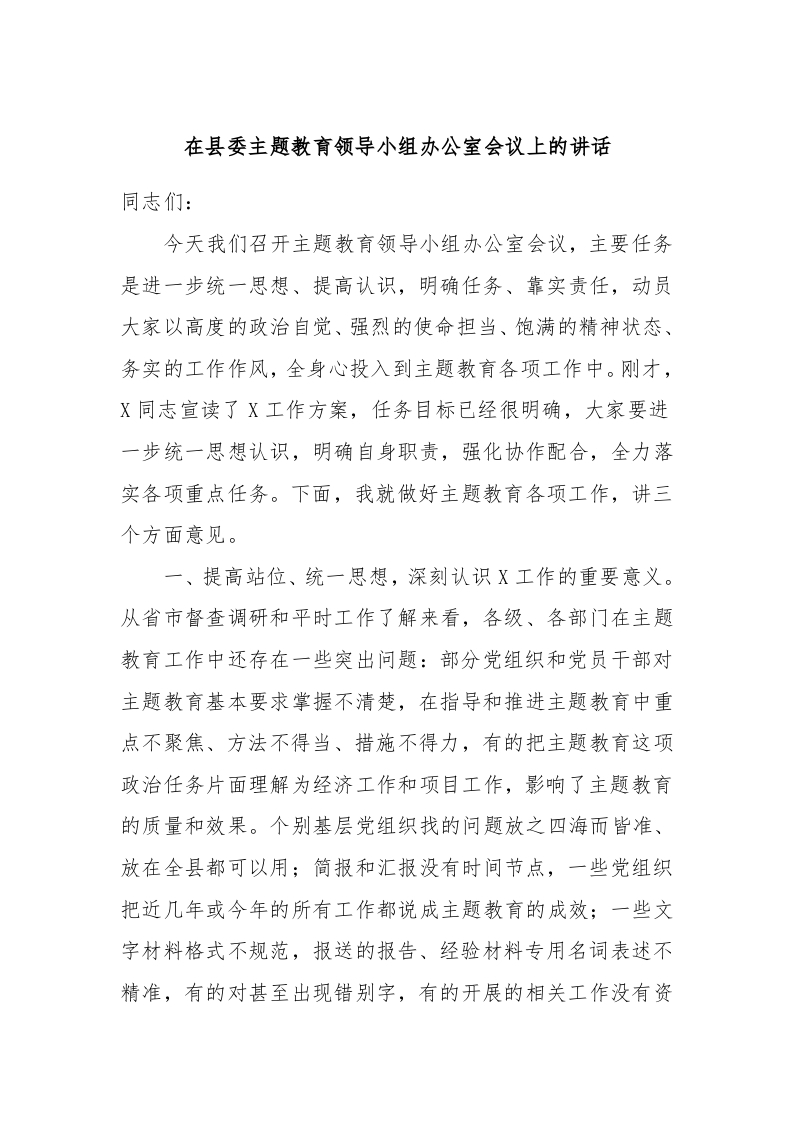 / 在县委主题教育领导小组办公室会议上的讲话