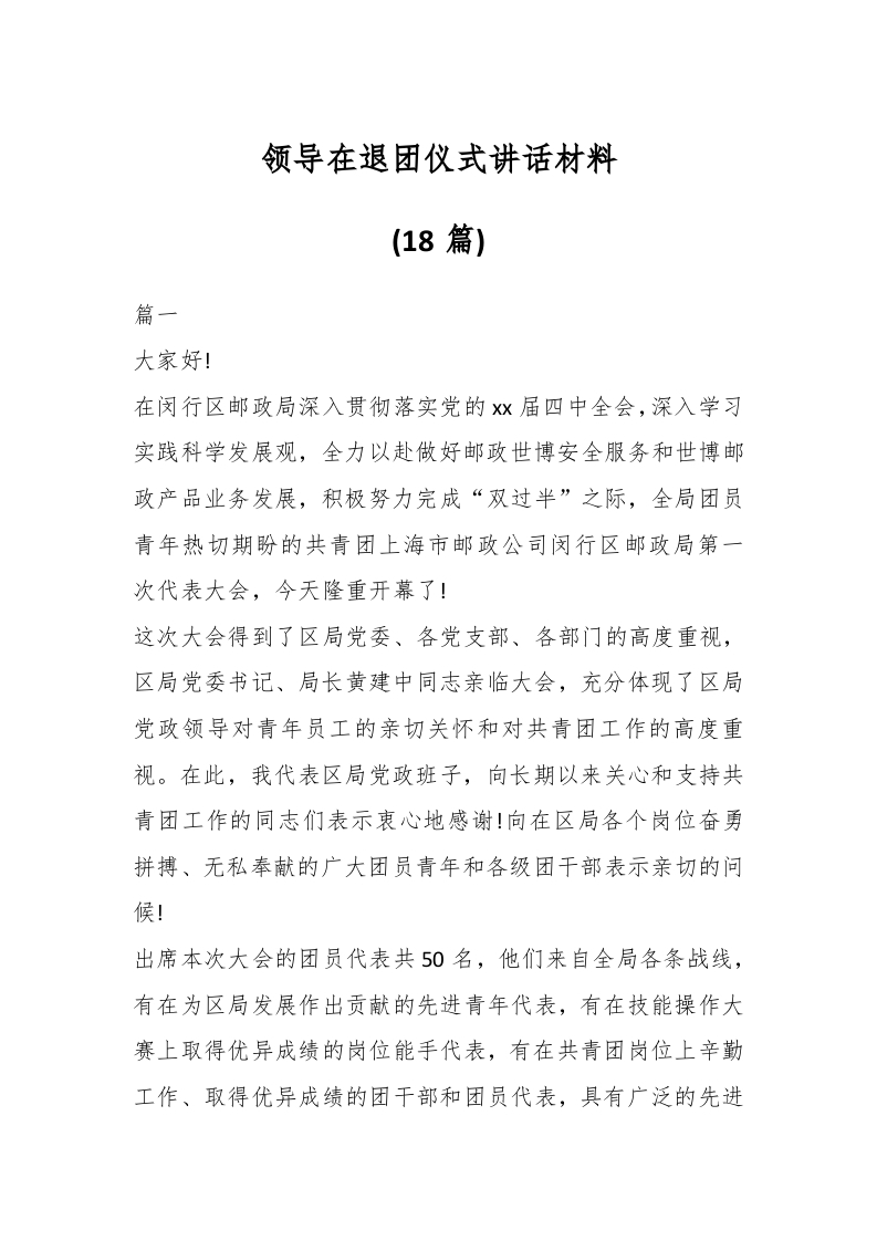 / (18篇)领导在退团仪式讲话材料