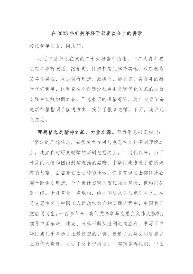 / 在2023年机关年轻干部座谈会上的讲话
