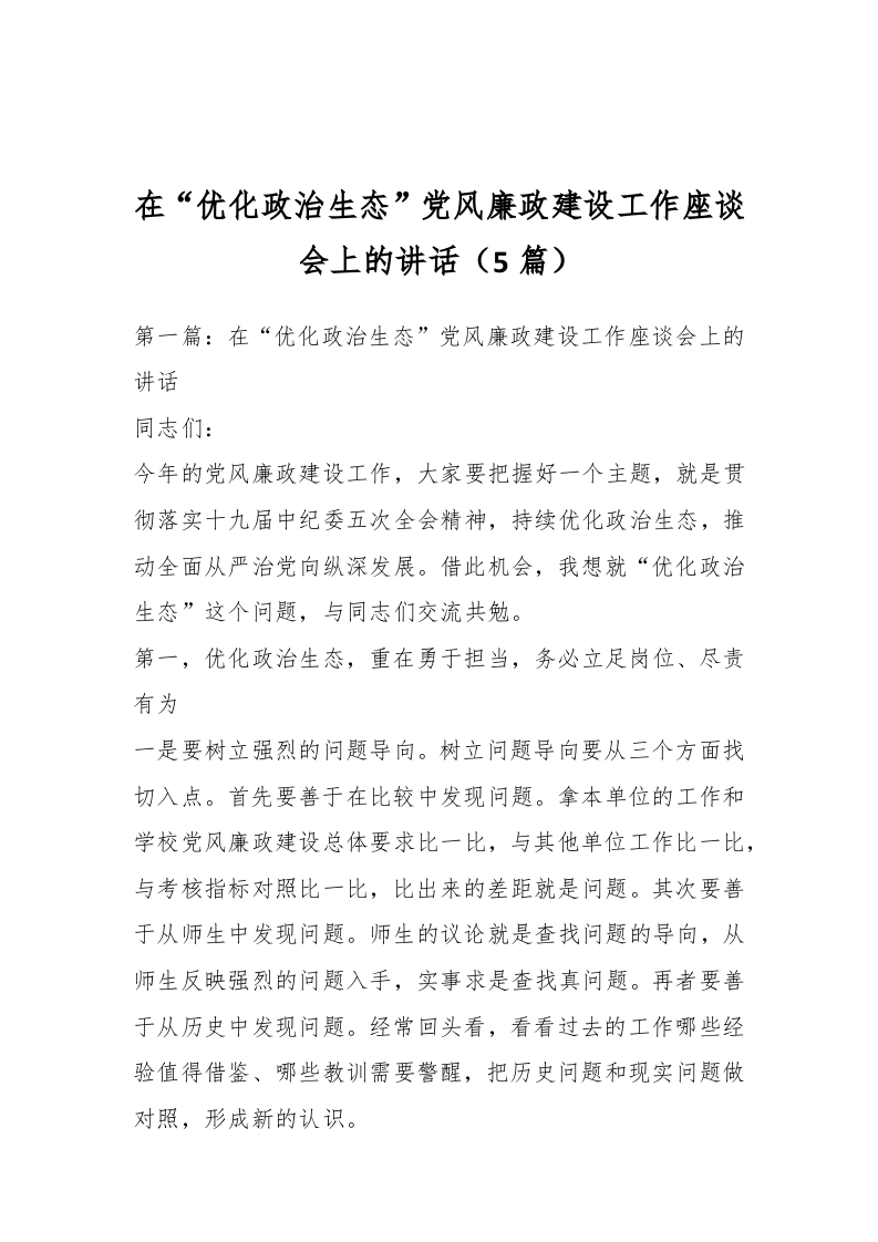 (5篇)在“优化政治生态”党风廉政建设工作座谈会上的讲话