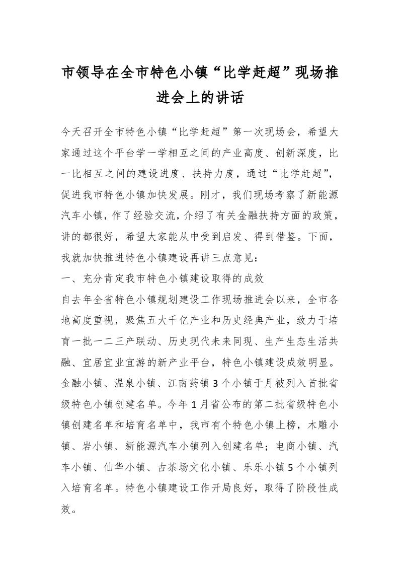 / 市领导在全市特色小镇“比学赶超”现场推进会上的讲话