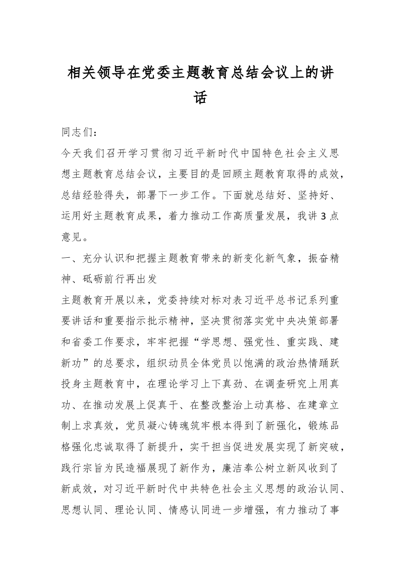 / 相关领导在党委主题教育总结会议上的讲话