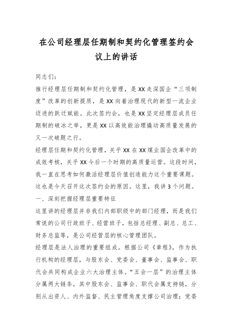 / 在公司经理层任期制和契约化管理签约会议上的讲话
