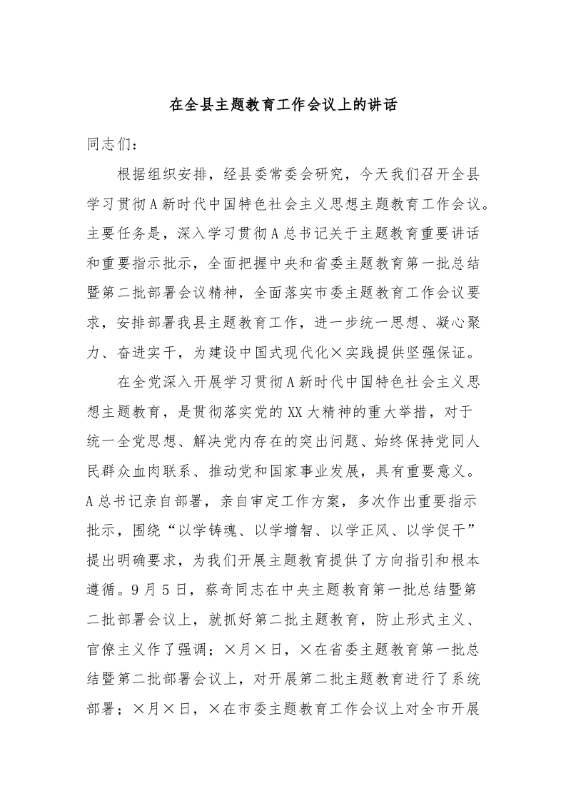 / 在全县主题教育工作会议上的讲话