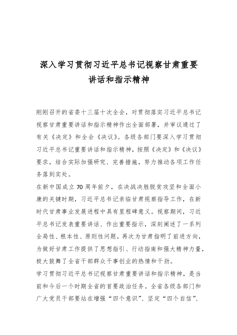 / 深入学习贯彻习近平总书记视察甘肃重要讲话和指示精神