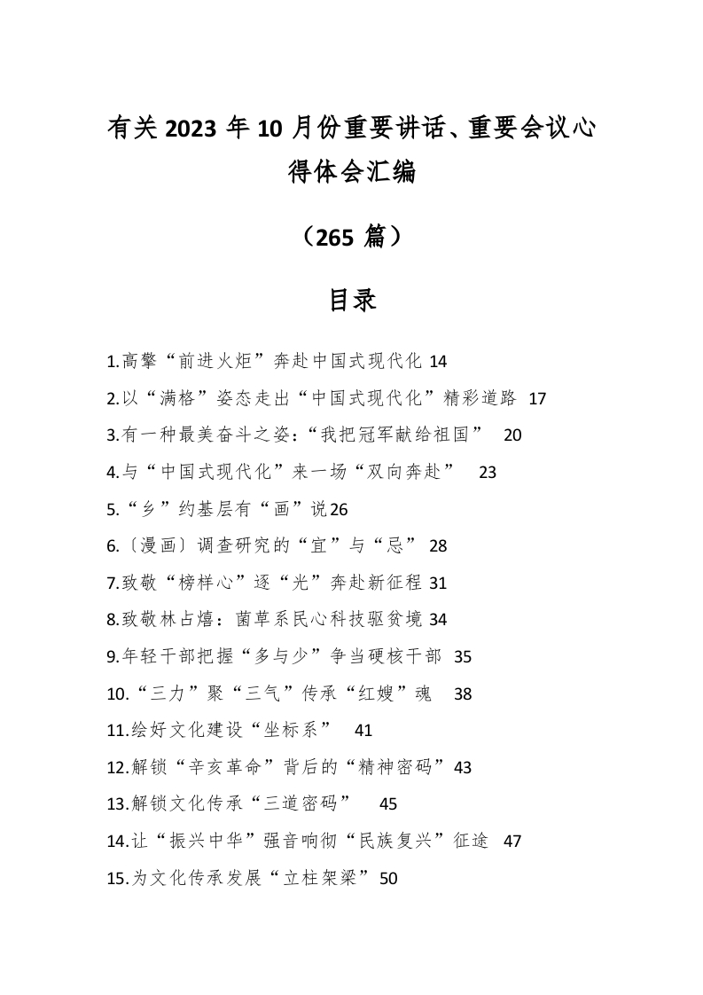 / (265篇)有关2023年10月份重要讲话、重要会议心得体会汇编