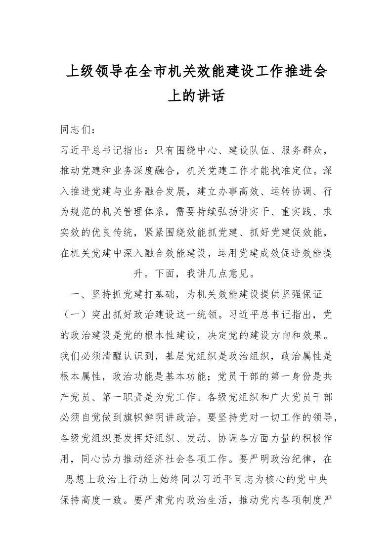 / 上级领导在全市机关效能建设工作推进会上的讲话