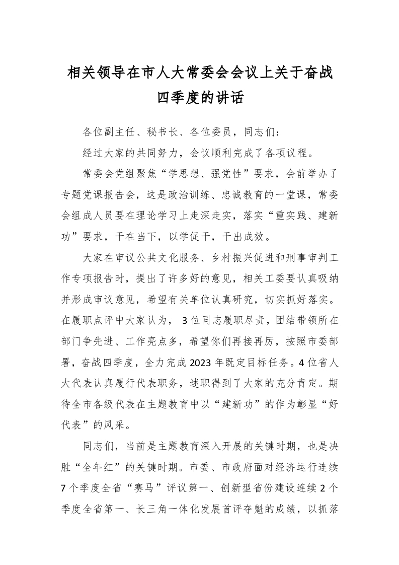 / 相关领导在市人大常委会会议上关于奋战四季度的讲话