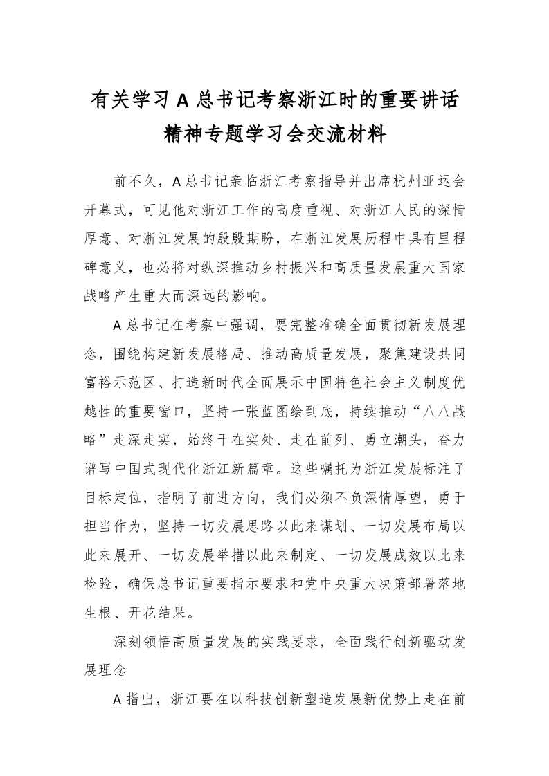 / 有关学习A总书记考察浙江时的重要讲话精神专题学习会交流材料