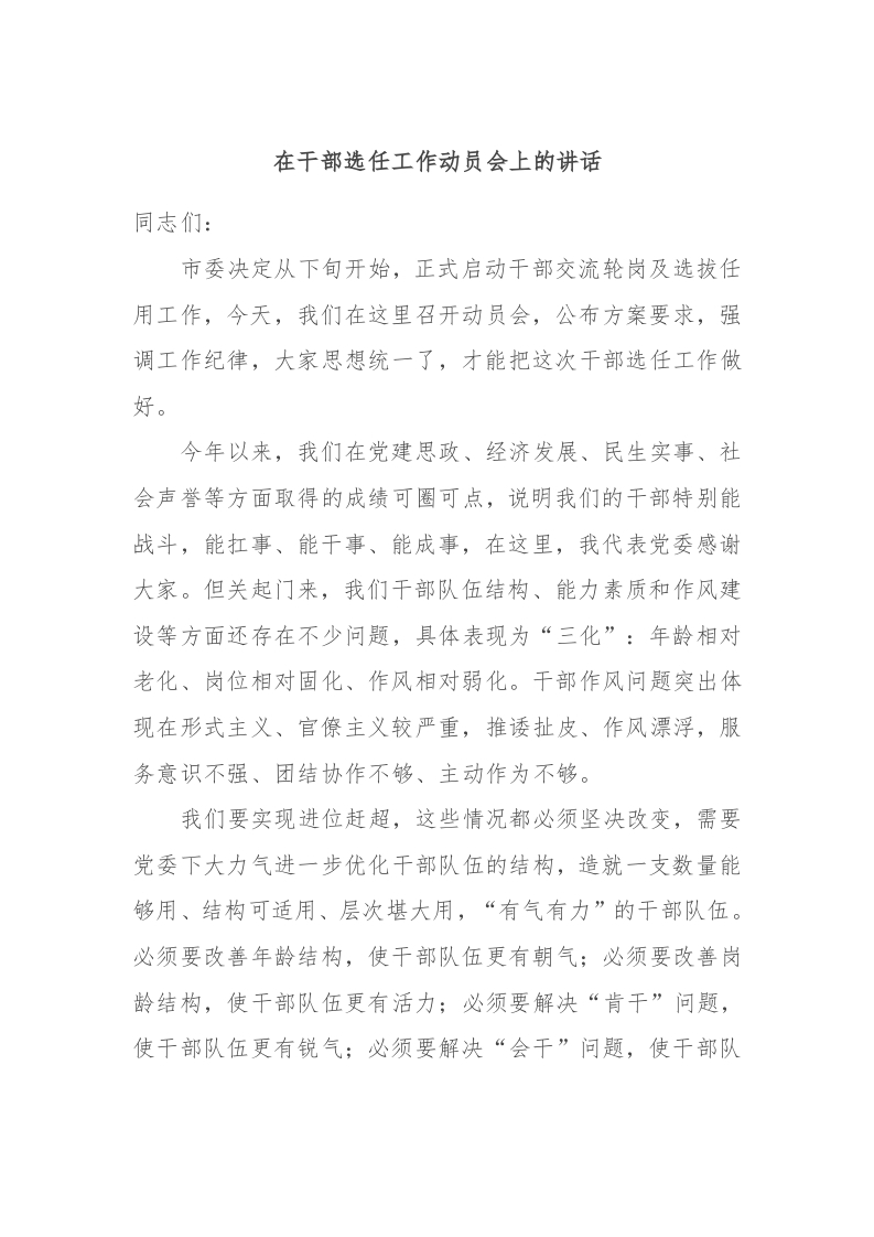 / 在干部选任工作动员会上的讲话