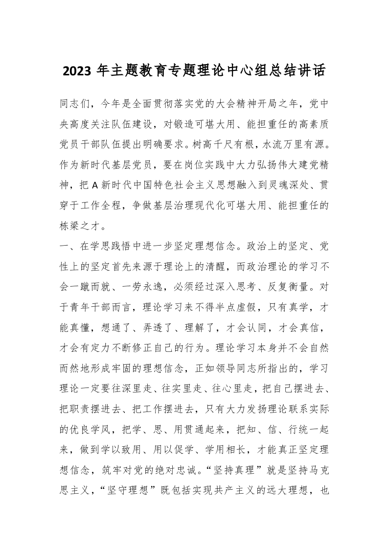/ 2023年主题教育专题理论中心组总结讲话