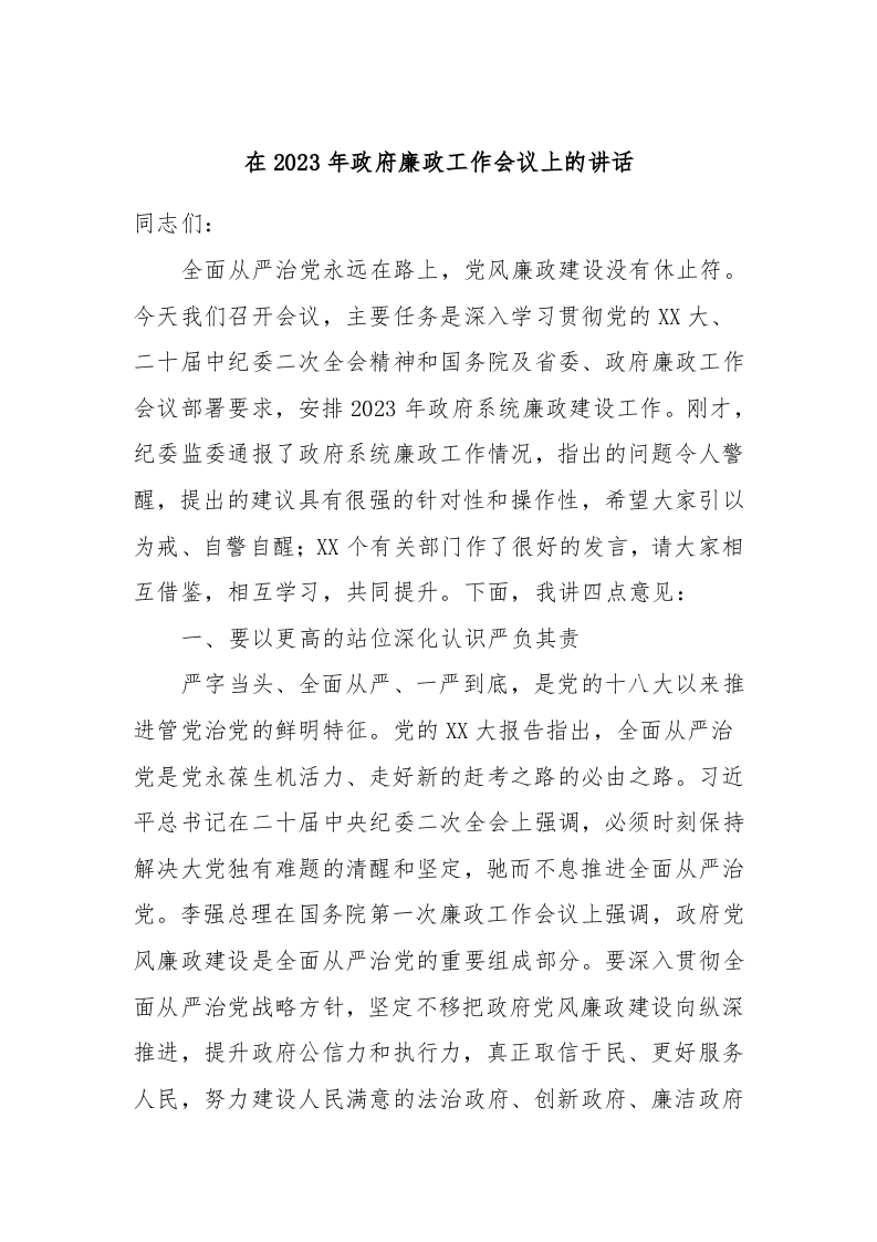 / 在2023年政府廉政工作会议上的讲话