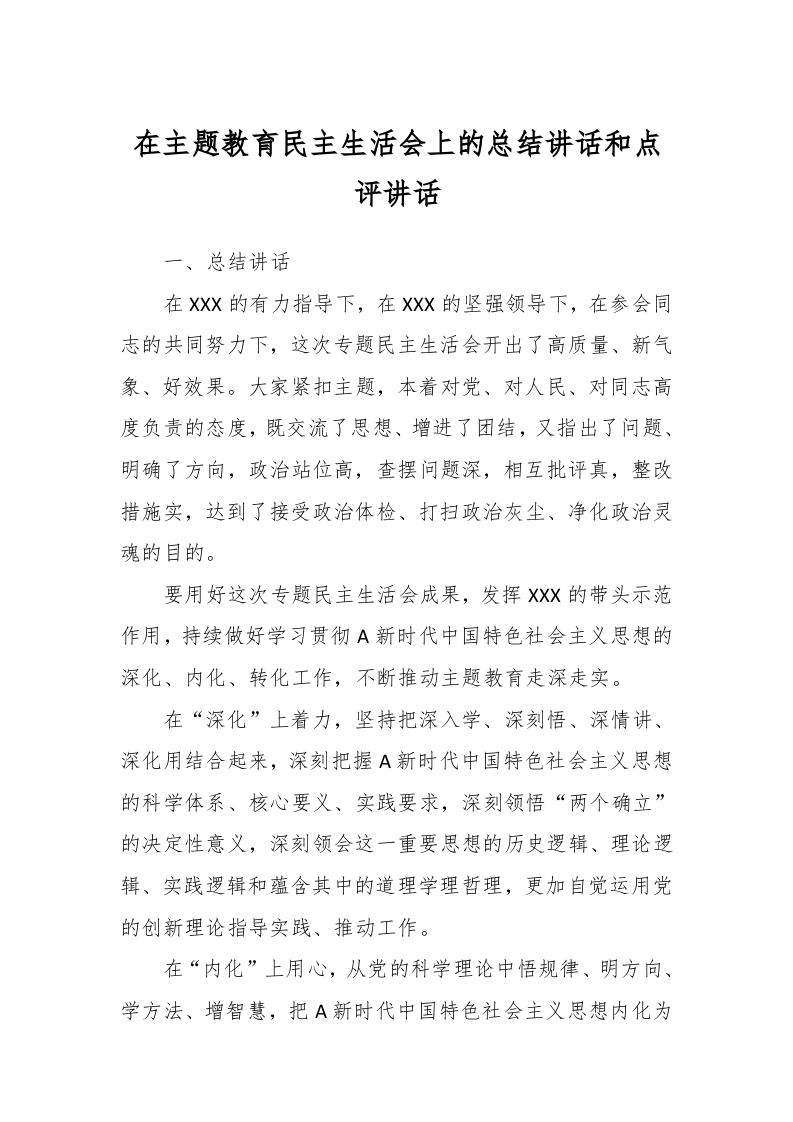 / 在主题教育民主生活会上的总结讲话和点评讲话