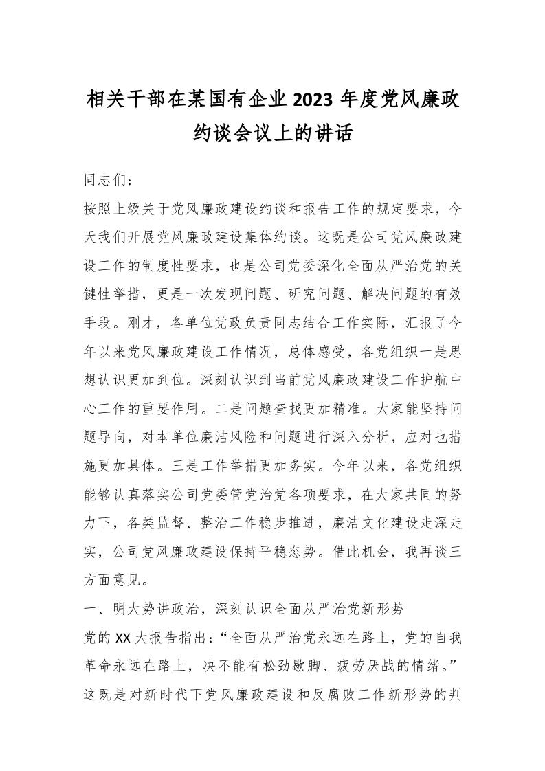 / 相关干部在某国有企业2023年度党风廉政约谈会议上的讲话