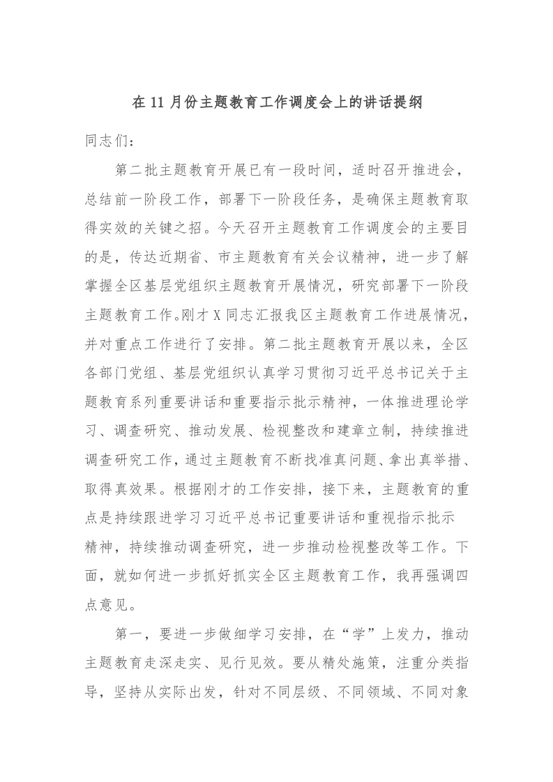 / 在11月份主题教育工作调度会上的讲话提纲
