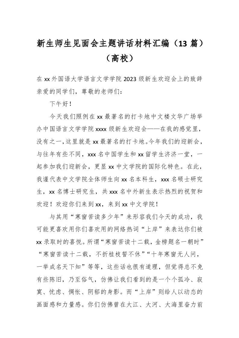 / (13篇)新生师生见面会主题讲话材料汇编(高校)