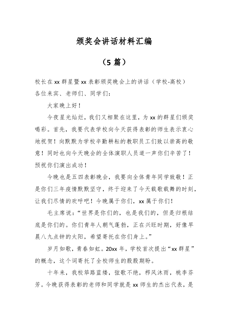 / (5篇)颁奖会讲话材料汇编