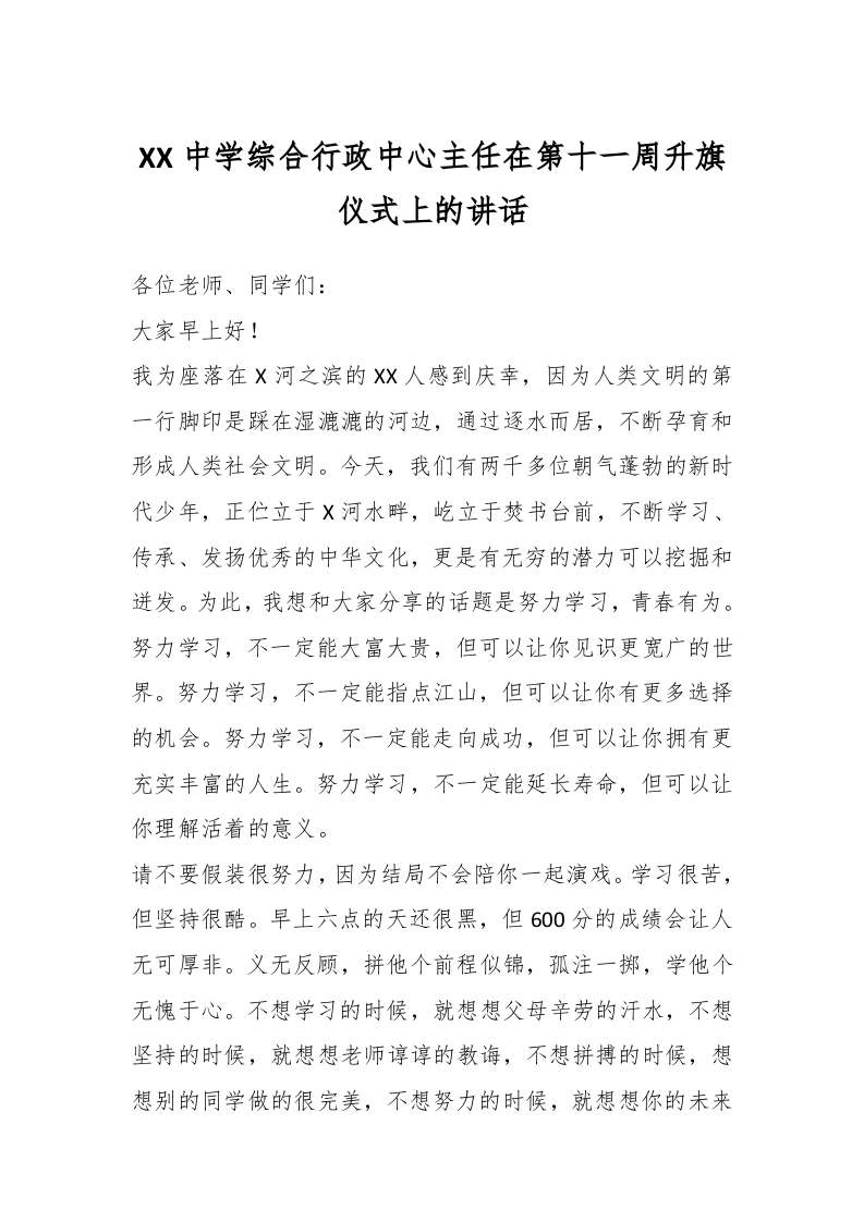 / XX中学综合行政中心主任在第十一周升旗仪式上的讲话