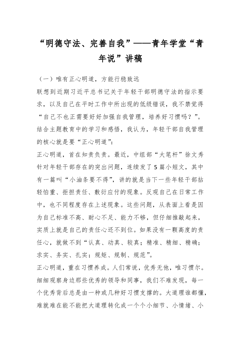 / “明德守法、完善自我”——青年学堂“青年说”讲稿